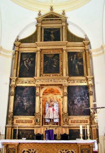 El Altar Mayor está elevado con respecto a la altura de la nave éste posee planta cuadrada con cúpula elevada sobre amplios arcos de medio punto, en el se encuentra el retablo donde se ubica la imagen de la Virgen del Pilar. Tras la Guerra Civil, el retablo quedó totalmente destrozado reconstruyéndose en 1943, limitándose los restauradores a dorar nuevamente sus elementos y a montarlos de acuerdo con su disposición originaria. El resultado fue un retablo planamente acorde con el estilo de las décadas finales del siglo XVI, momento al que corresponde.